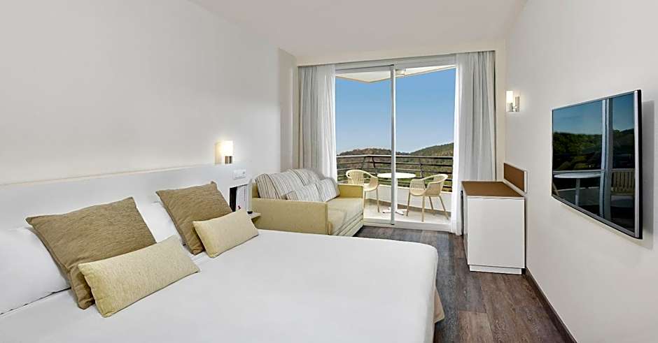 Featuring plenty of natural light, this modern room comes with a furnished terrace and pool views. The room has a double bed or 2 single beds.